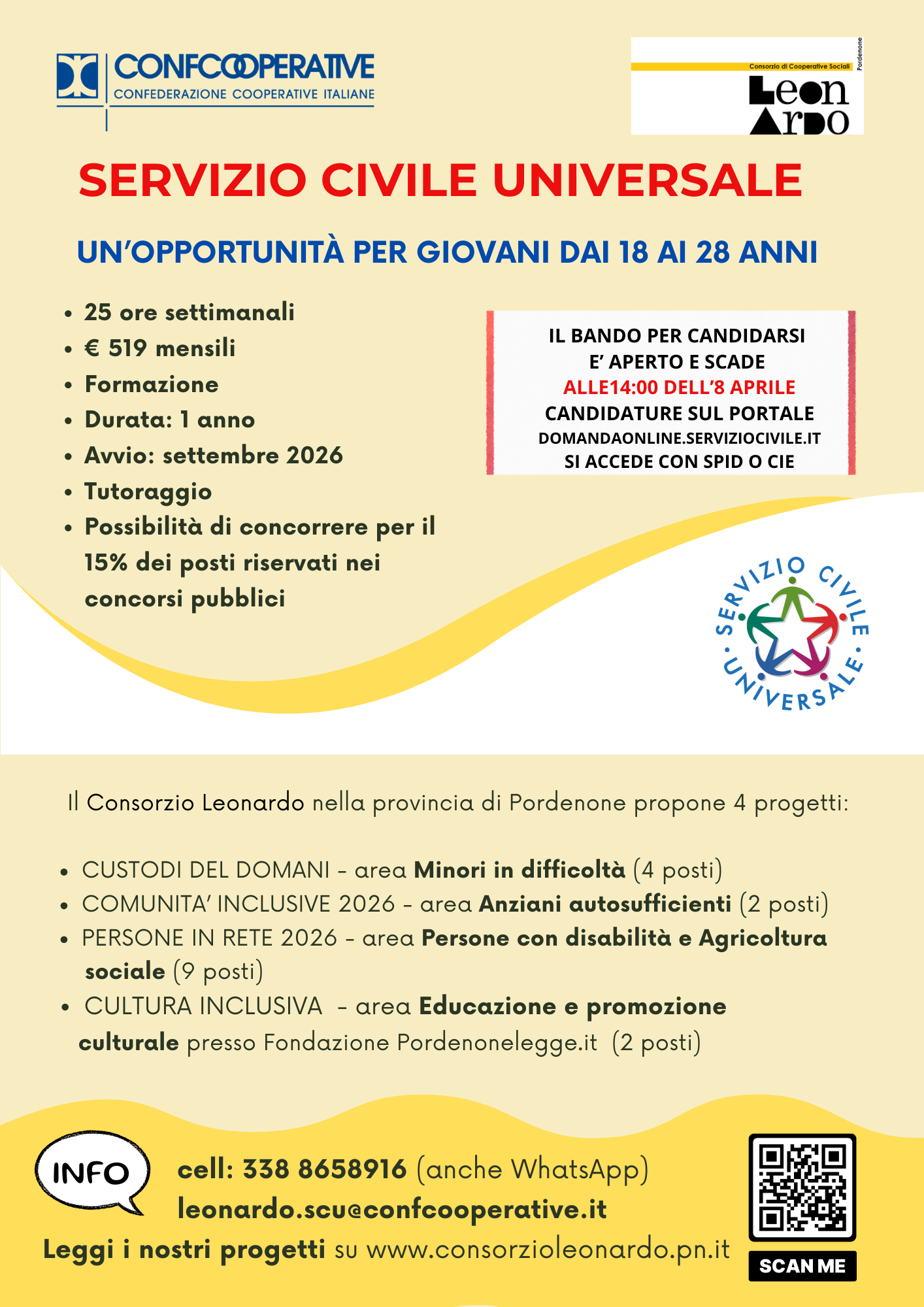 Il Servizio civile “Orizzonti comuni: Inclusione, cultura e ambiente” inerente alle aree dell’assistenza (disabilità, anziani, minori in situazione di disagio e agricoltura sociale) e della cultura (quest’anno abbiamo in progetto in collaborazione con Pordenonelegge) offre 17 posti in diverse sedi nella provincia di Pordenone (e non solo).