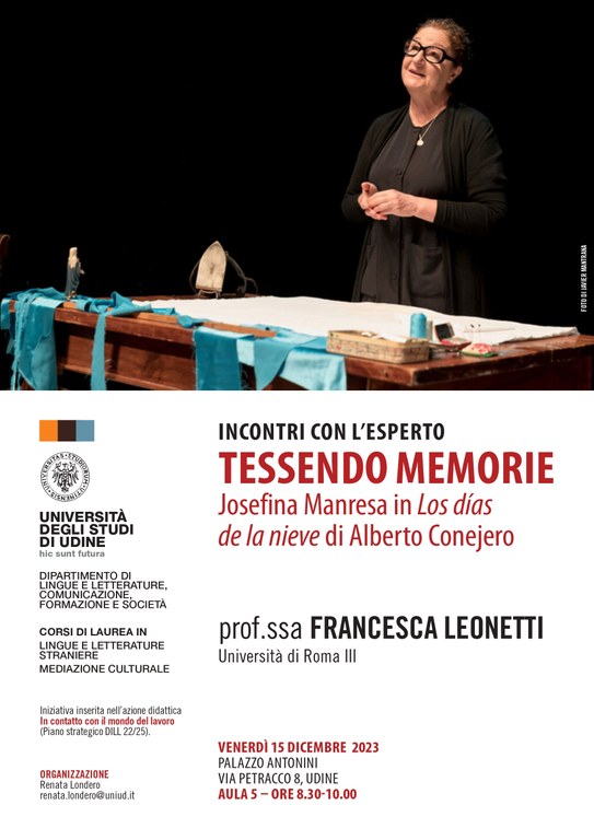 Incontri con l'esperto "Tessendo memorie": Josefina Manresa in Los días de la nieve di Alberto Conejero - 15/12/2023